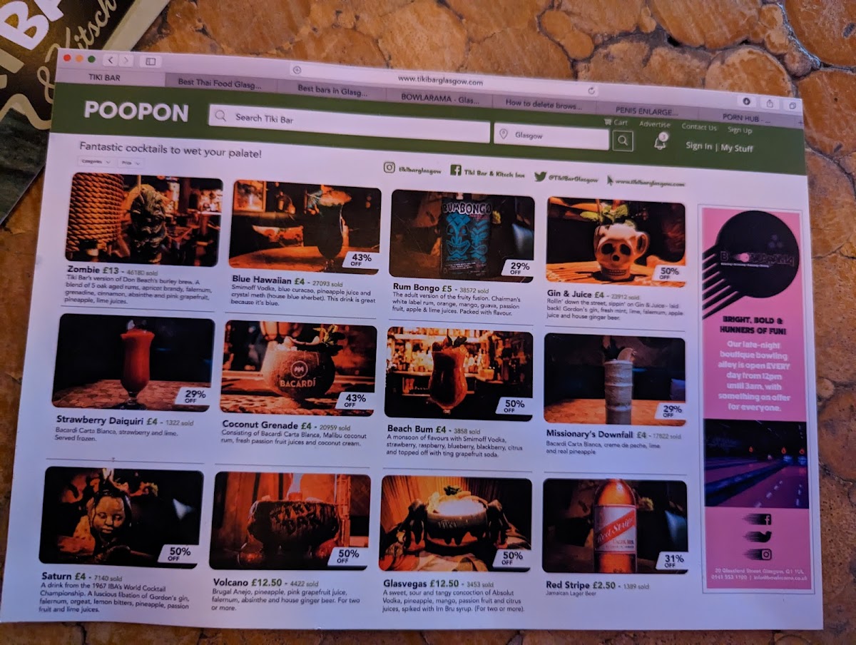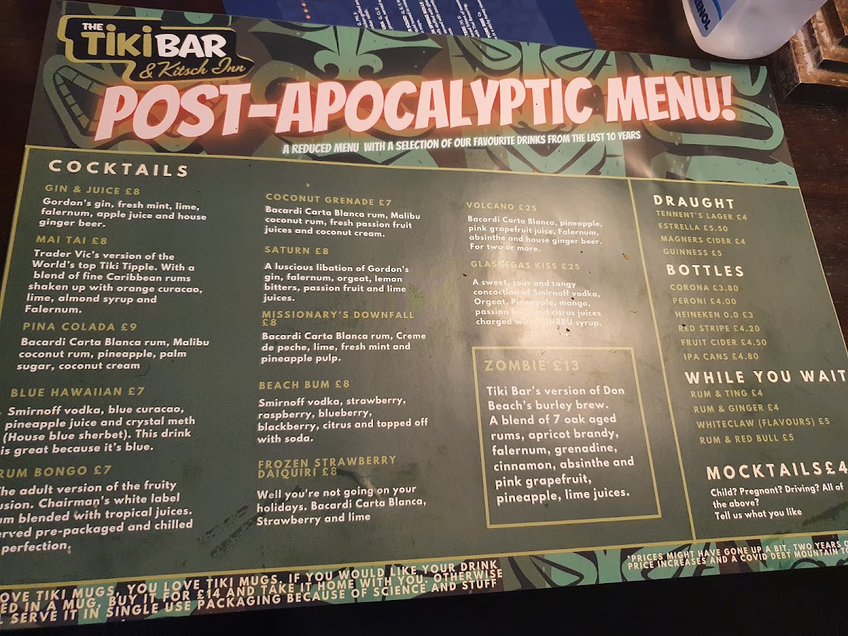Tiki Bar & Darts Den, located at 214 Bath St, Glasgow G2 4HW, offers a unique blend of vibrant tropical cocktails and exciting darts games, making it a standout spot for both casual drinkers and competitive players alike. The menu reflects this fusion, with a variety of creatively crafted drinks that capture the spirit of the tropics, alongside hearty pub food to complement the drinks.